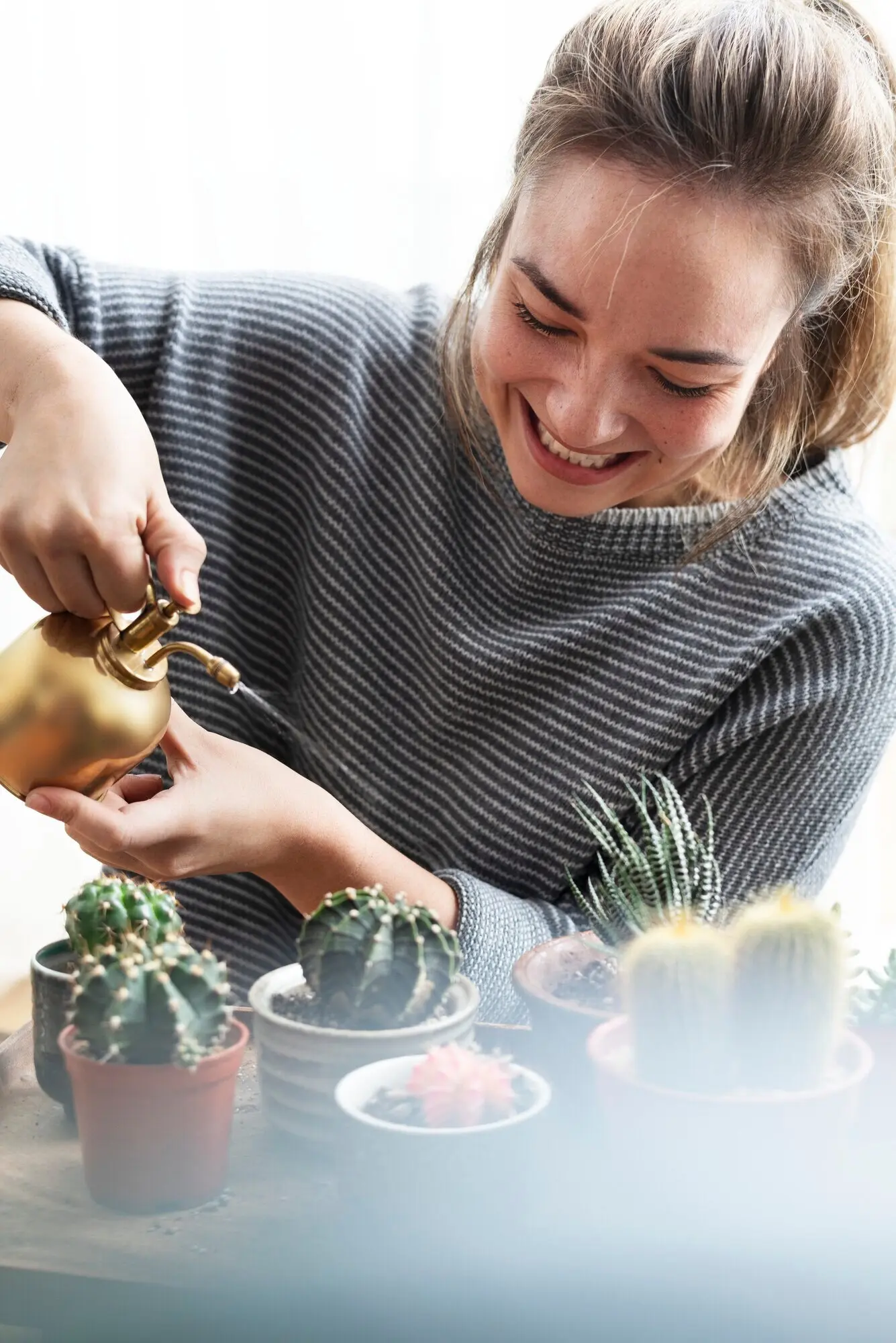 East-facing windows offer gentle sun that wakes leaves without overheating soil. Place prayer plants, peperomia, or ferns slightly back from panes to avoid rapid moisture loss. Rotate weekly, dust leaves, and track seasonal shifts that extend or shorten exposure, keeping growth even and stress minimal.
